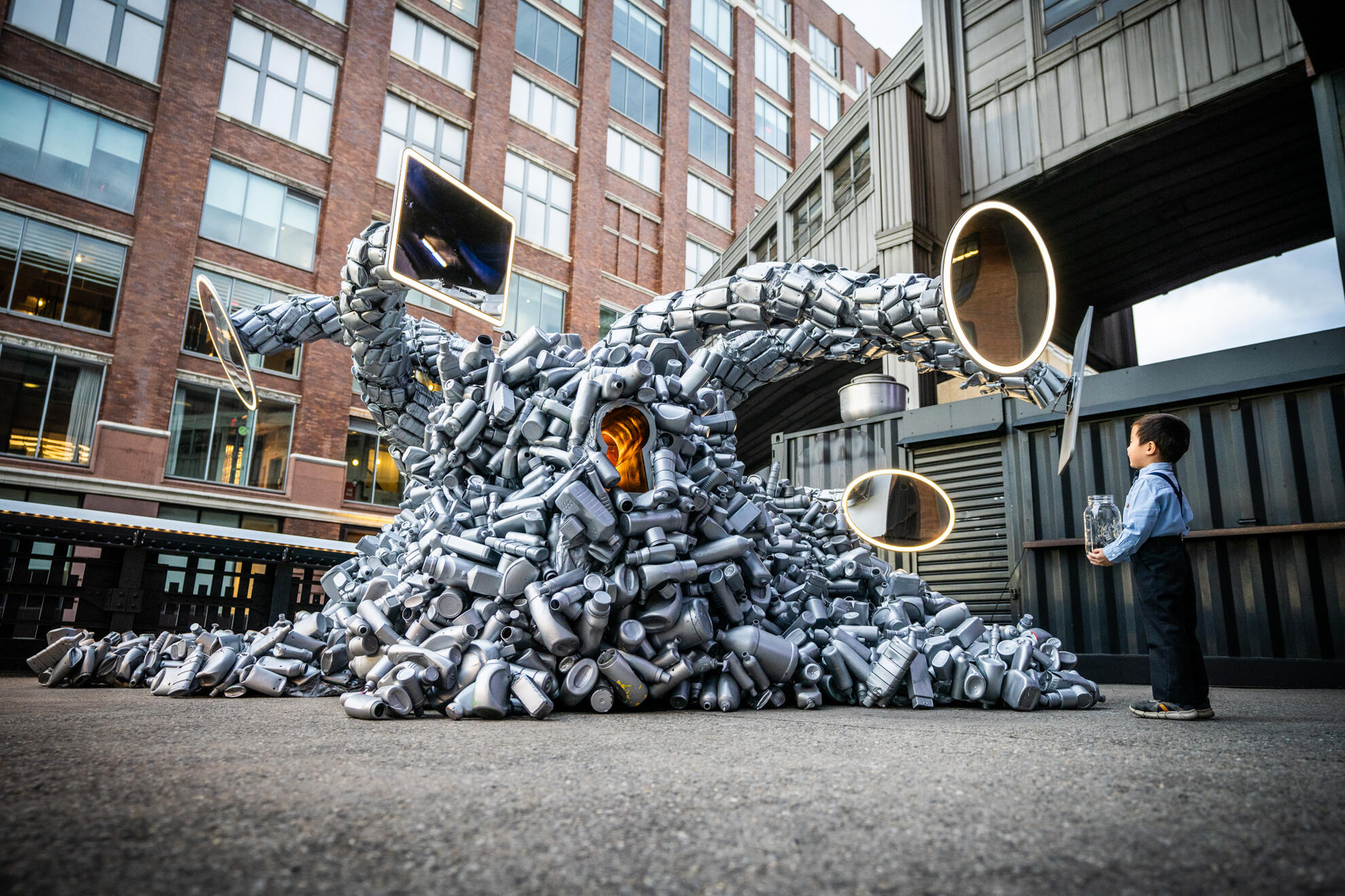 This art installation was inspired by the greek legend of the Hydra, which grows back another head for each one that you cut off — reminiscent of the single-use plastic waste problem.Large-scale mirrors featuring thought-provoking prompts protrude from the mountain of empties, beckoning passer-bys to contemplate how they too might advocate for change.Hidden within the installation is a keyhole where viewers can discover an old-school apocathery - reminiscent of a time before plastic was invented.For their part, Kiehl’s, the sponsor of this project, has committed to making single-use plastic a thing of the past, by designing 100 percent of its products to be reused, refilled, or made of recycled materials by 2030.This art installation was fabricated by Brooklyn Based Fabrication studio SFDS and engineered by Theta Consulting.