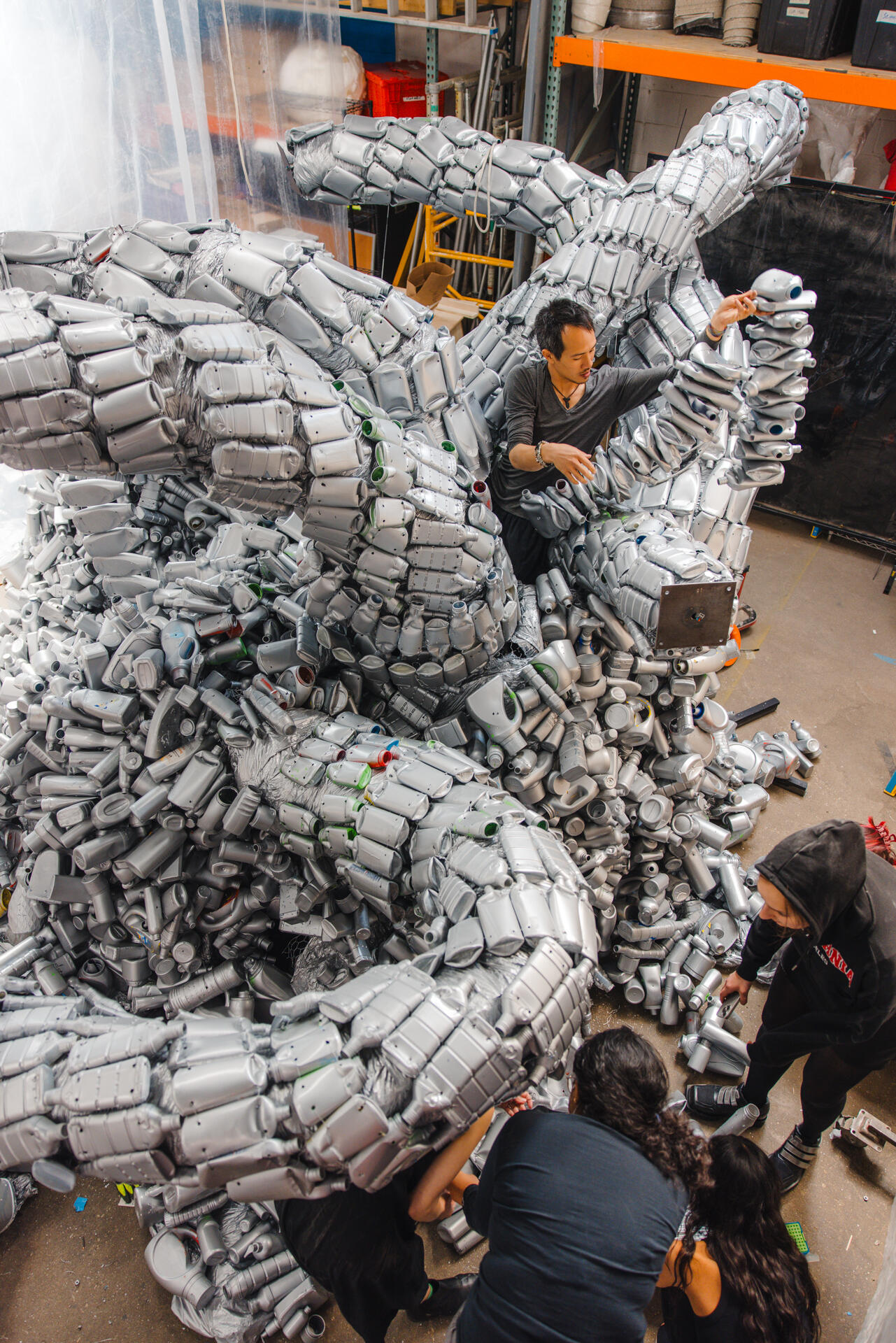 To build this art installation, we enlisted the help of the Sustainable Fashion Community Collective and Kiehl's Recycle and Be Rewarded program to collect over 3 tons of non food-based household plastics.Over the course of three months, hundreds of volunteers helped us to collect, clean, organize and transform a mountain of single-use plastic into art advocating for change.